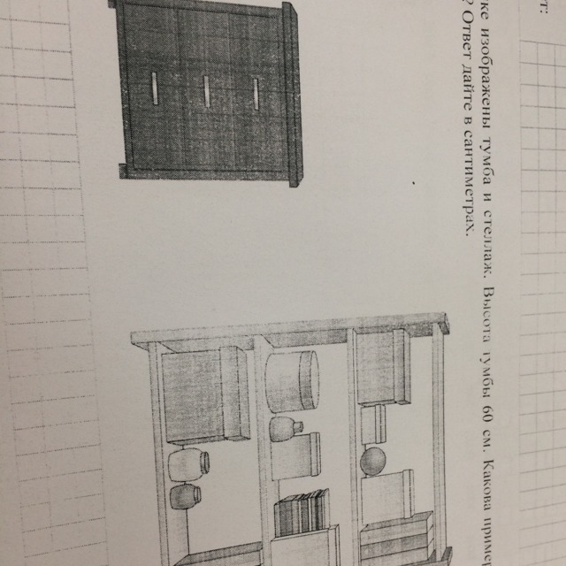 На рисунке изображены тумба и стеллаж.высота тумбы 60 см .какова примерная высота стеллажа ? Ответ дайте в сантиметрах