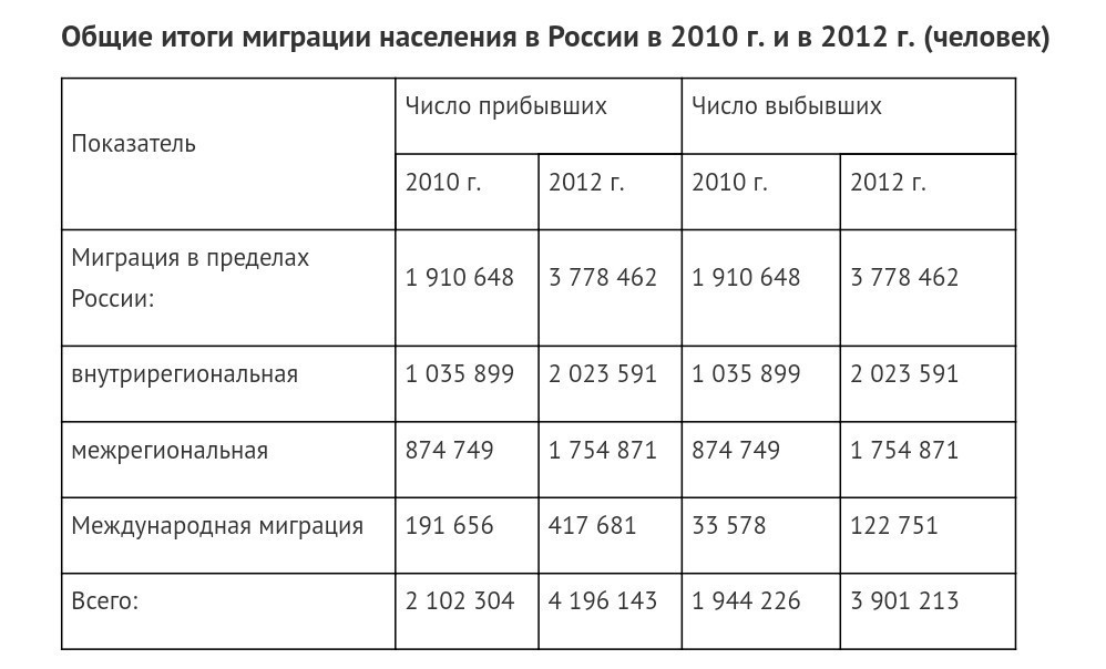 ЗАДАНИЕ: Определите миграционный прирост населения в 2012 г. Ответ запишите в виде числа.