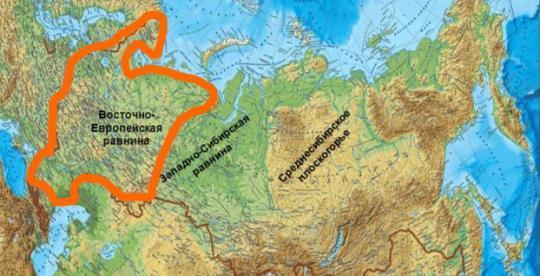 3 Равнина расположена западнее Уральских гор,южнее Белого,Баренцева и Карского морей,юго-восточнее Скандинавских гор,восточнее реки Вислы,севернее Чёрного,Азовского,Каспийского морей и Кавказа.
