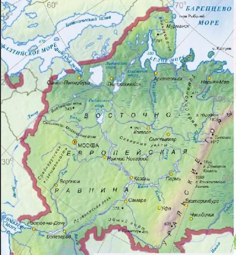 7 На равнине находятся такие крупные реки как Волга,Днепр,Дон,Северная Двина,Печора,Десна,Днепр.Крупные озёра это Онежское ,Ладожское,Псковско-Чудское,Ильмень.Крупные города:Москва,Смоленск,Новгород,Воронеж,Волгоград,Казань,Самара.