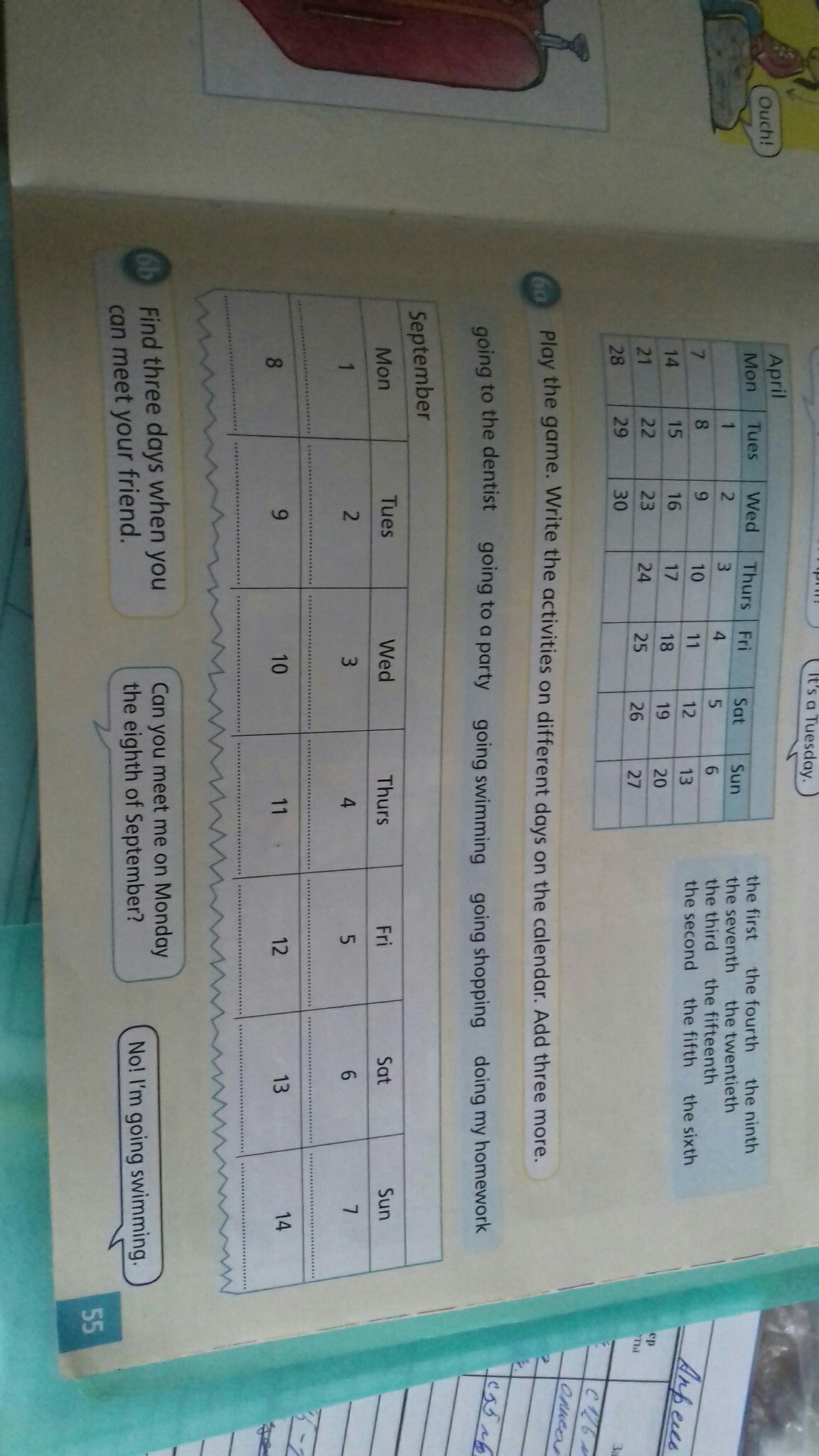 найди дни недели с внешкольными занятиями