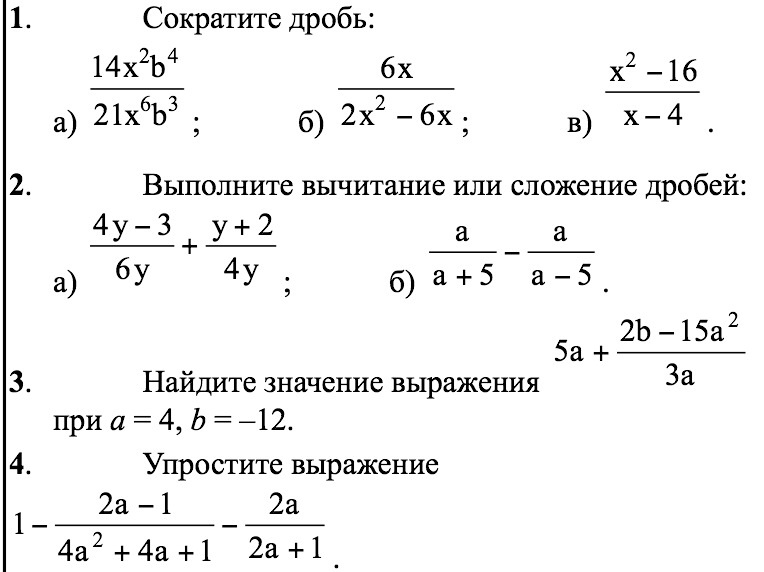 намбер фри: 5a+2b-15a2/3a=15a^2-15a^2+2b/3a=2b/3a=-24/12=-2