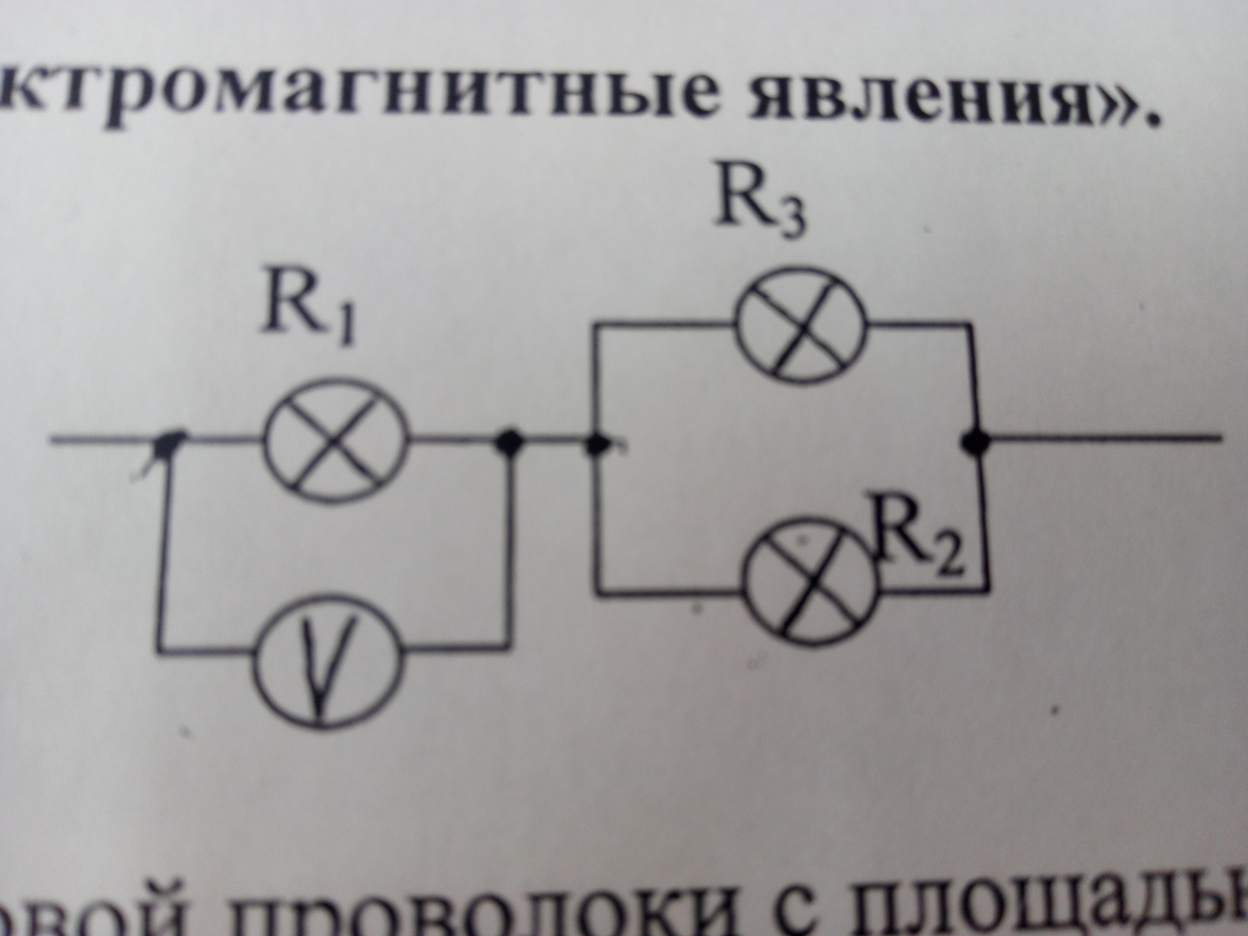 Определитель мощность, потребляемую третьей лампой если сопротивление ламп соответственно равны 6 Ом, 12 Ом, 12 Ом, а вотльметр показывает 6 В.