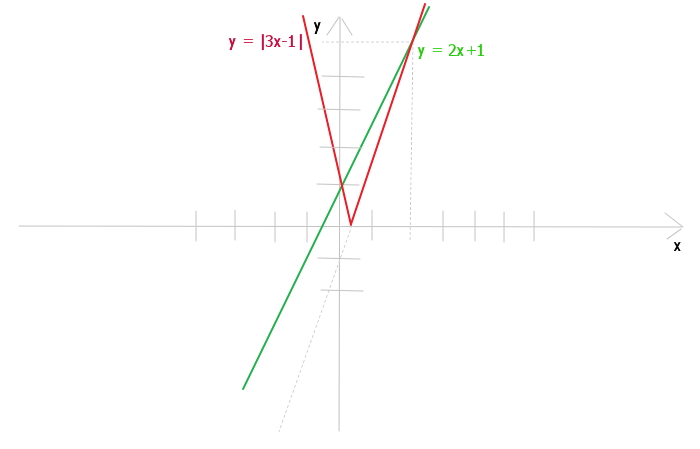 т.к. это выражение под знаком модуля, график будет расположен только выше оси ОХ (у не может принимать отриц.значений), часть прямой линии, лежащая ниже оси ОХ отображается симметрично относительно ОХ...