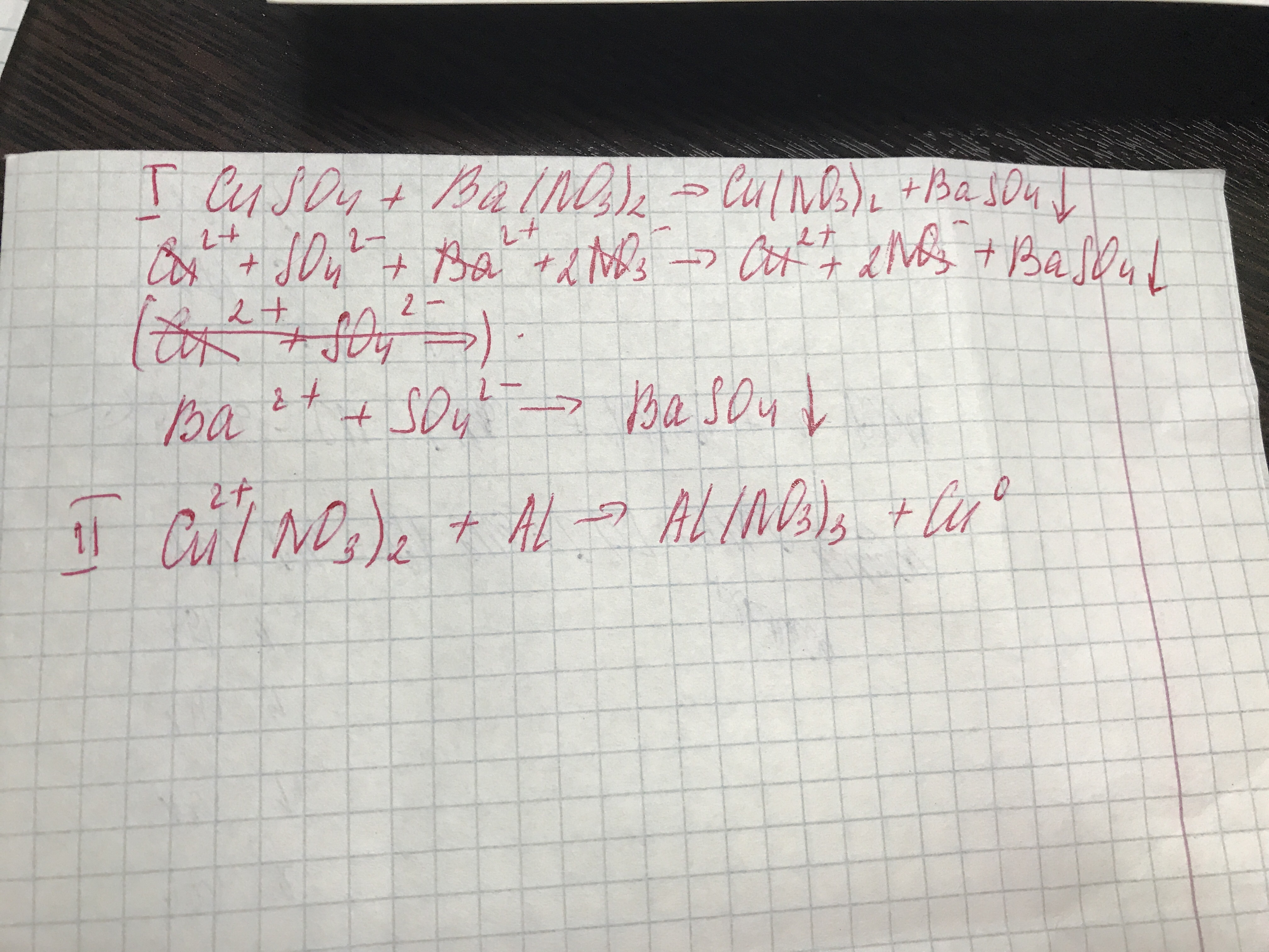 Даны вещества: АlСl3,CuSO4, 5H2O, Ba(NO3)2, НСl, Н2O2, Аl. Используя воду и необходимые вещества только из этого списка, получите в две стадии нитрат алюминия. Опишите признаки реакций. Для реакции ионного обмена напишите сокращённое ионное уравнение реакции.