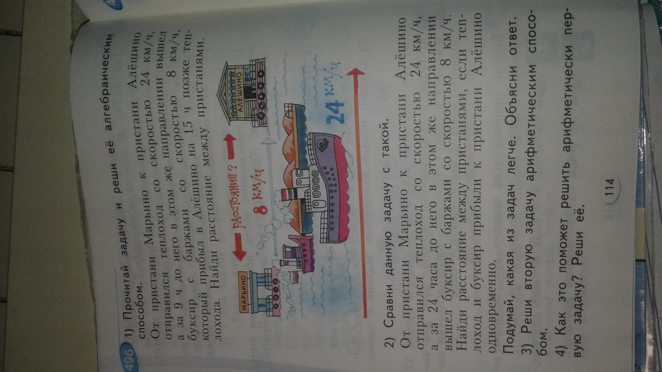 1)24х8=192(км)-прошел буксир.