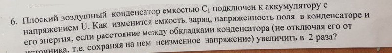 Напряжение U не меняется, C уменьшается в 2 раза, значит и заряд q уменьшится в 2 раза.