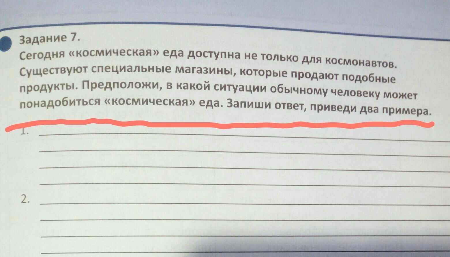 Сегодня космическая еда доступна не только для космонавтов.Запиши, в какой ситуации обычному человеку может понадобиться космическая еда. Запиши ответы, приведи два примера.
