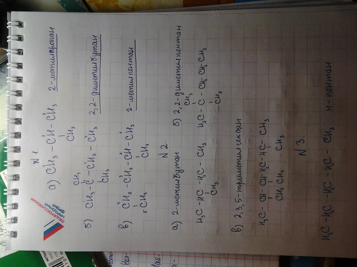 б)H3C-C(CH3)-CH2-CH2-CH3 (то что в скобках нужно писать сверху и снизу)