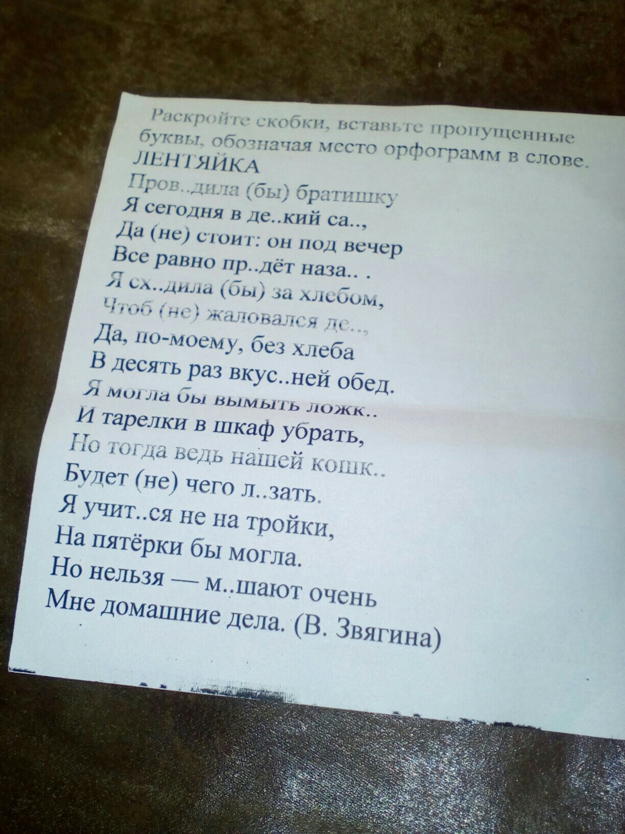 Проводила бы братишку Я сегодня в детский сад, Да не стоит: он под вечер всё равно придёт назад .Я сходила бы за хлебом, чтоб не жаловался дед, да ,по-моему, без хлеба в 10 раз вкуснее обед. Я могла бы вымыть ложки и тарелки в шкаф убрать, Но тогда ведь нашей кошке будет нечего лизать .Я учиться не тройки, на пятёрки бы могла.Но нельзя- мешают очень , мне домашние дела.