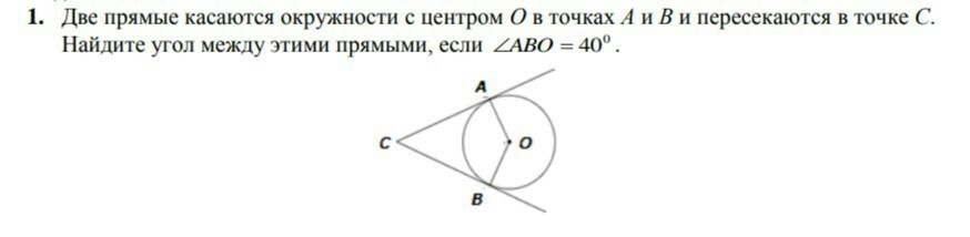 угол ABOи BAO равны между собой и равны 40. тогда угол O равен 180-40-40=100