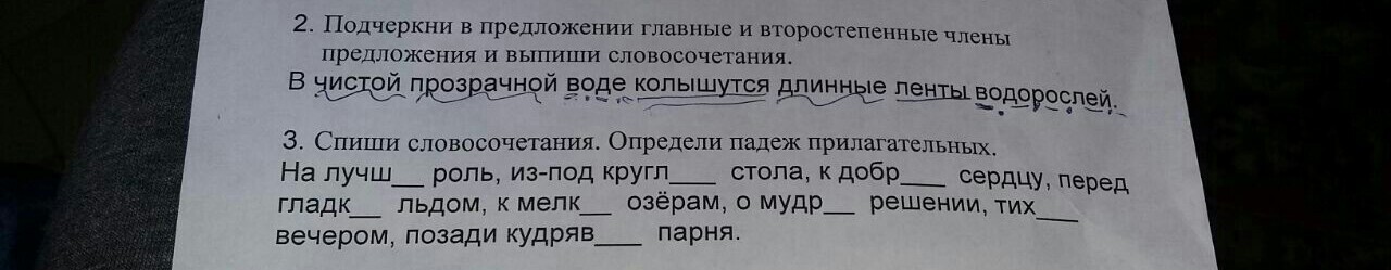 2)подчеркнуто правильно вчистой воде,длинные ленты,ленты водорослей, прозрачной воде.