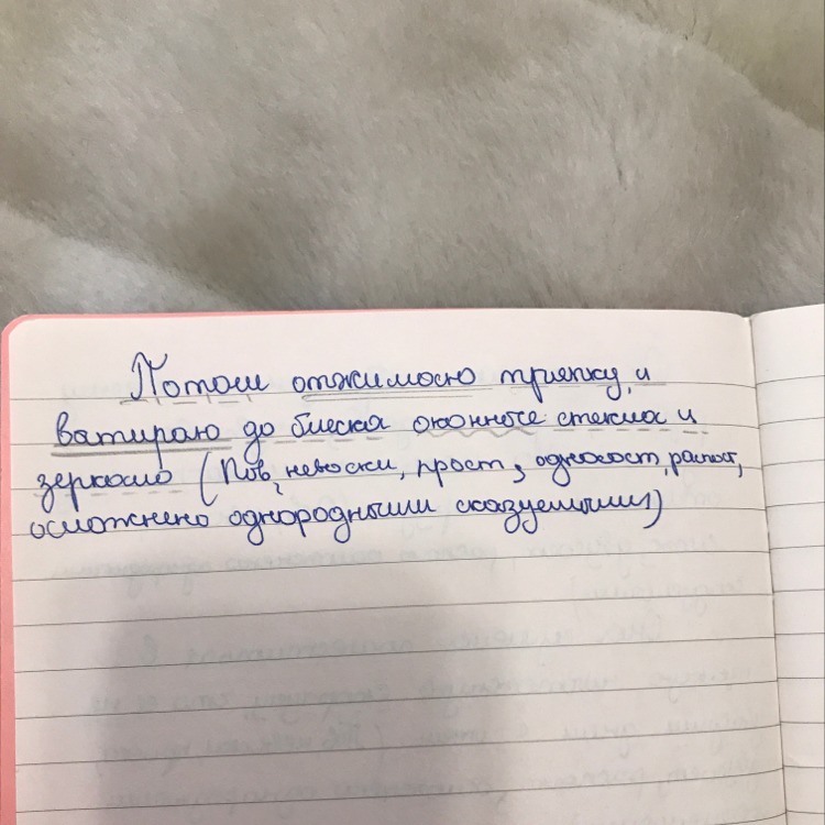 синтаксический разбор предложения: потом отжимаю тряпку и вытираю до блеска оконные стёкла и зеркало.
