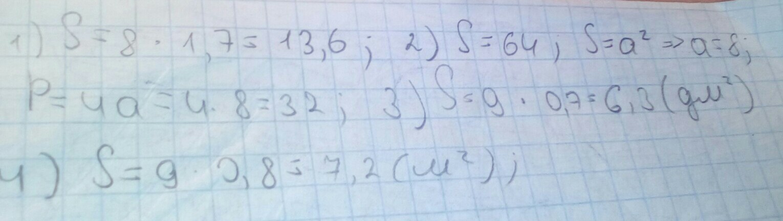 а)Длина прямоугольника 8 см, ширина 17 мм.Найди его площадь.