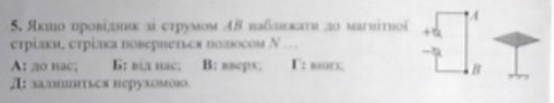Якщо провідник зі струмом АВ наближати до магнітної стрілки, стрілка повернеться полюсом N ...