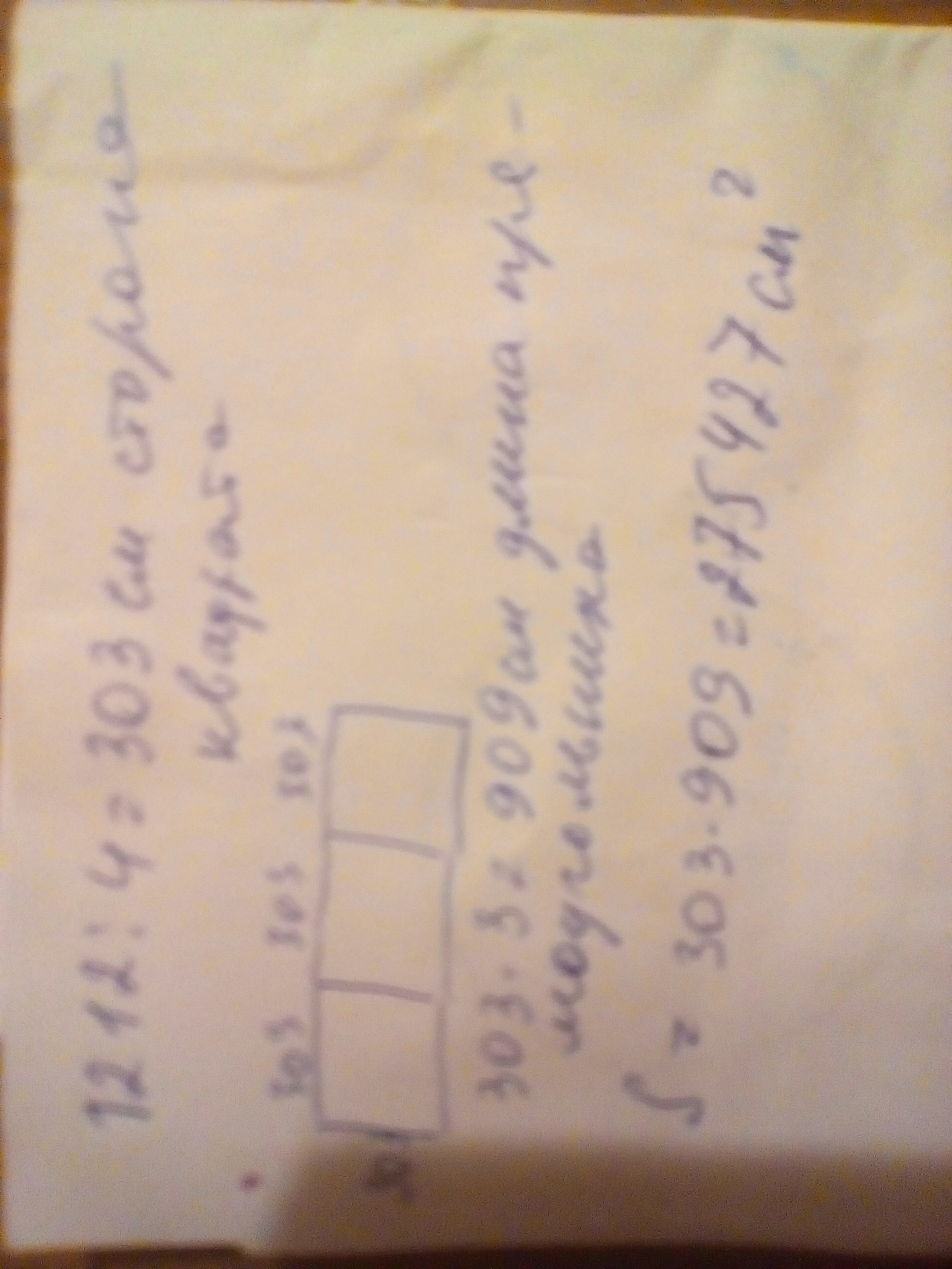 1) 1212 : 4 = 303 (см) - сторона квадрата.
