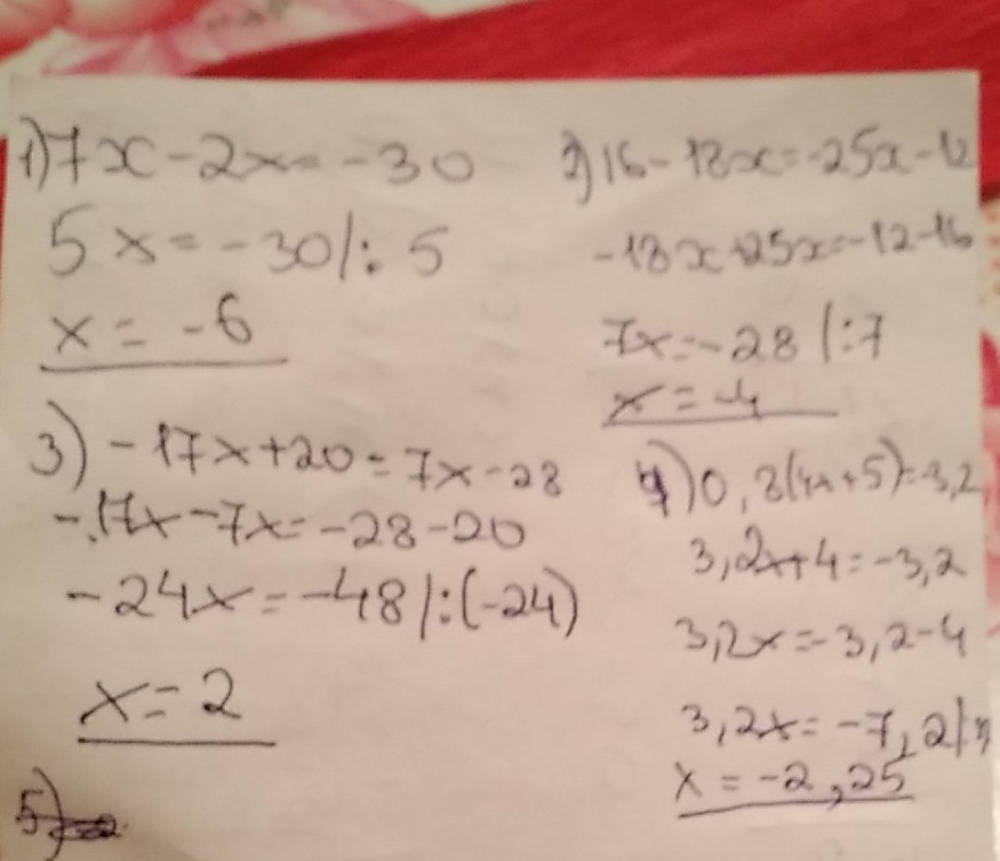 Решите уравнение 1)7х= -30 +2х 2)16-18х=-25х-12 3)-17х+20=7х-28