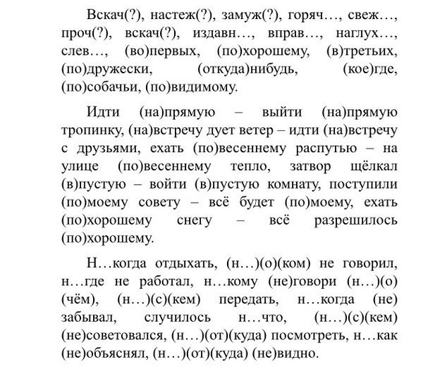 Вскач,настежь,замуж,горячий,свежий,прочь,вскач,издавна,вправо, наглухо,слево, во первых,по хорошему,третьих,по дружески,откуда ни