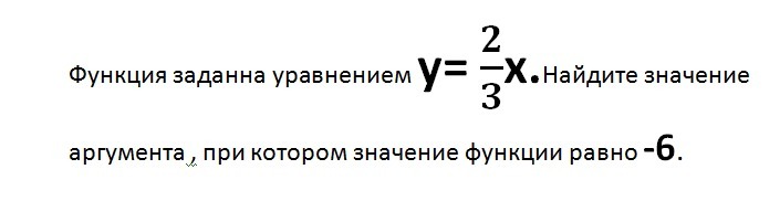 Функция заданна уравнением y= 2/3x.Найдите значение аргумента , при котором значение функции равно -6.