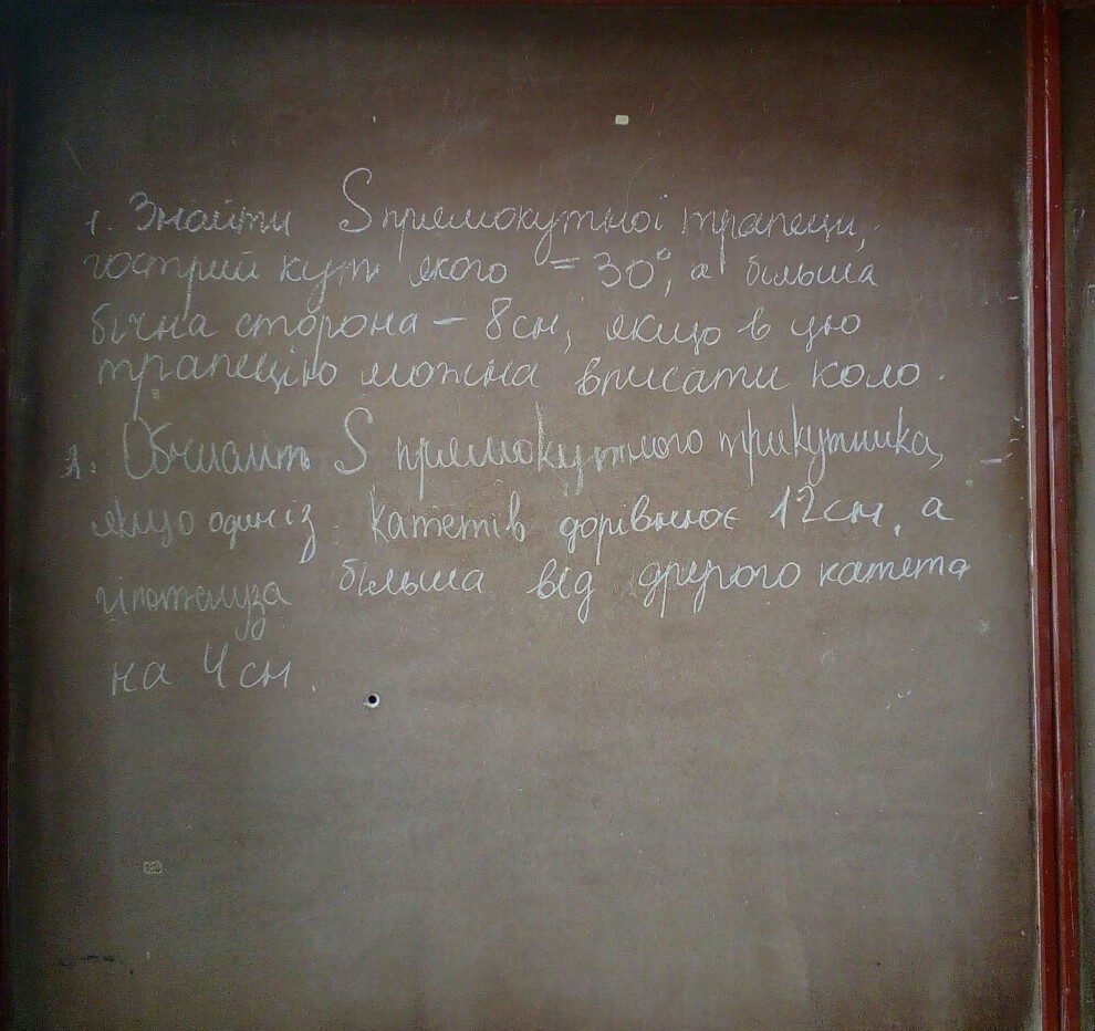 с=h. h-высота, @-угол, a и b - основания трапециис - боковая сторона прямоугольной трапеции, перпендикулярная основаниямd - боковая сторона трапеции, не являющаяся перпендикулярной основаниямα - острый угол при большем основании трапецииm - средняя линия трапеции.d- 8cм, с=d*[email protected], с=8*1/2=4, т.к. с-высота, то она и диаметр круга
