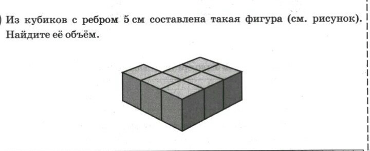 Либо можно проще, находим V одного кубика (5*5*5=175) и умножаем на количество кубиков (7), также получаем 875