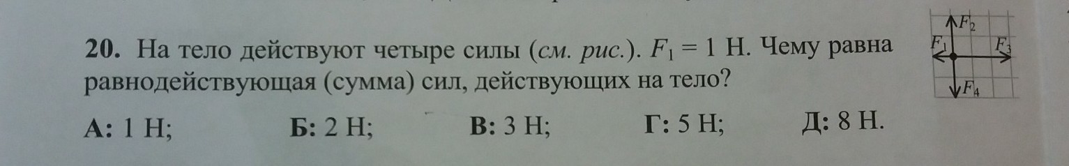 Силы F2 и F4 направлены в противоположные стороны и равны между собой, следовательно, в сумме дадут нуль.