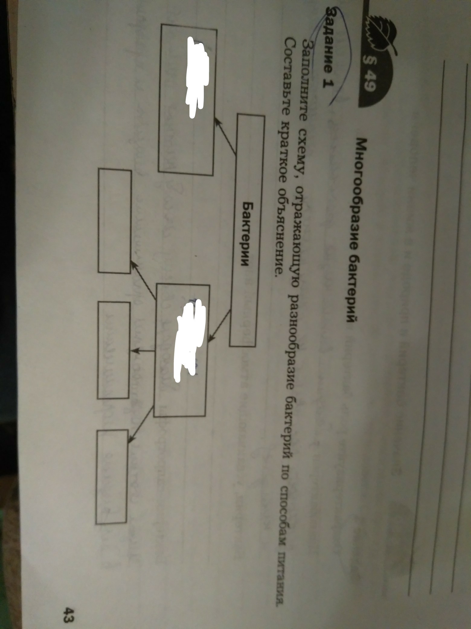 заполни схему отражающую разнообразие бактерий по способам питания.(((то что замазано это мои попытки что-то сделать)))
