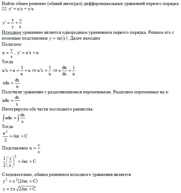 Найти общее решение уравнения ( Однородные дифференциальные уравнения первого порядка