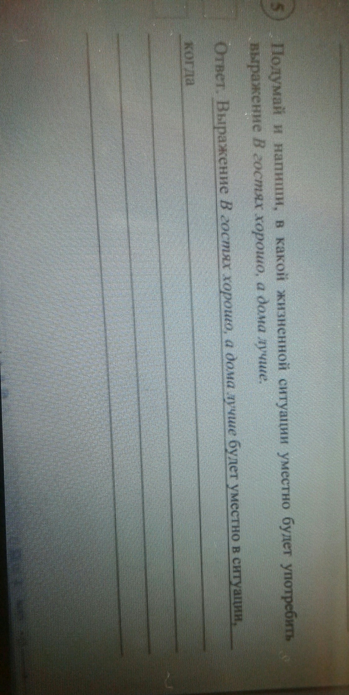 Помогите!!! В какой жизненой ситуации будет уместно сказать в гостях хорошо а дома лучше