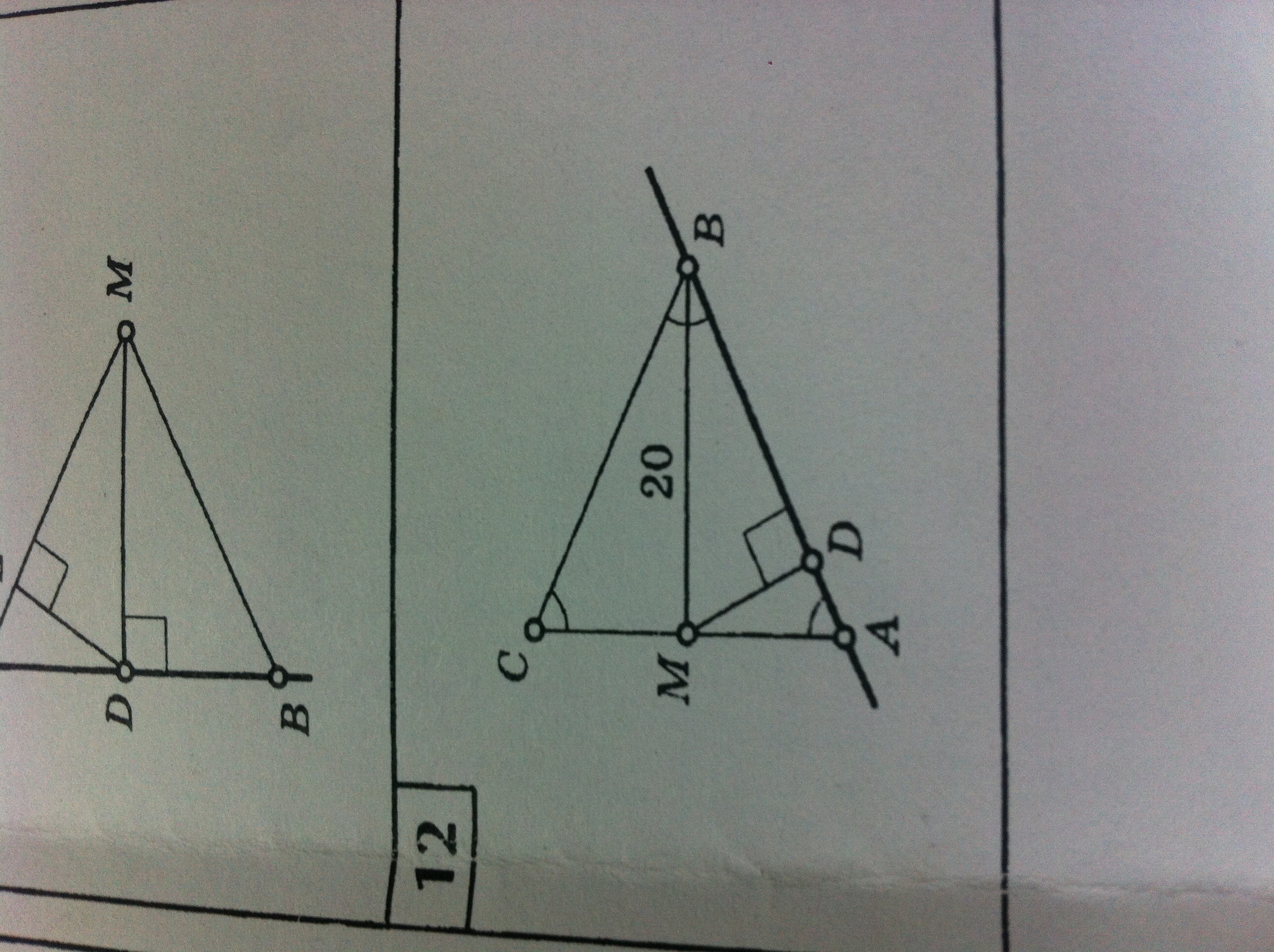 III. MB = 20(по условию), а MD = 1/2 MB(катет прямоугольного треугольника, лежащий напротив угла 30°), следовательно MD = 10.