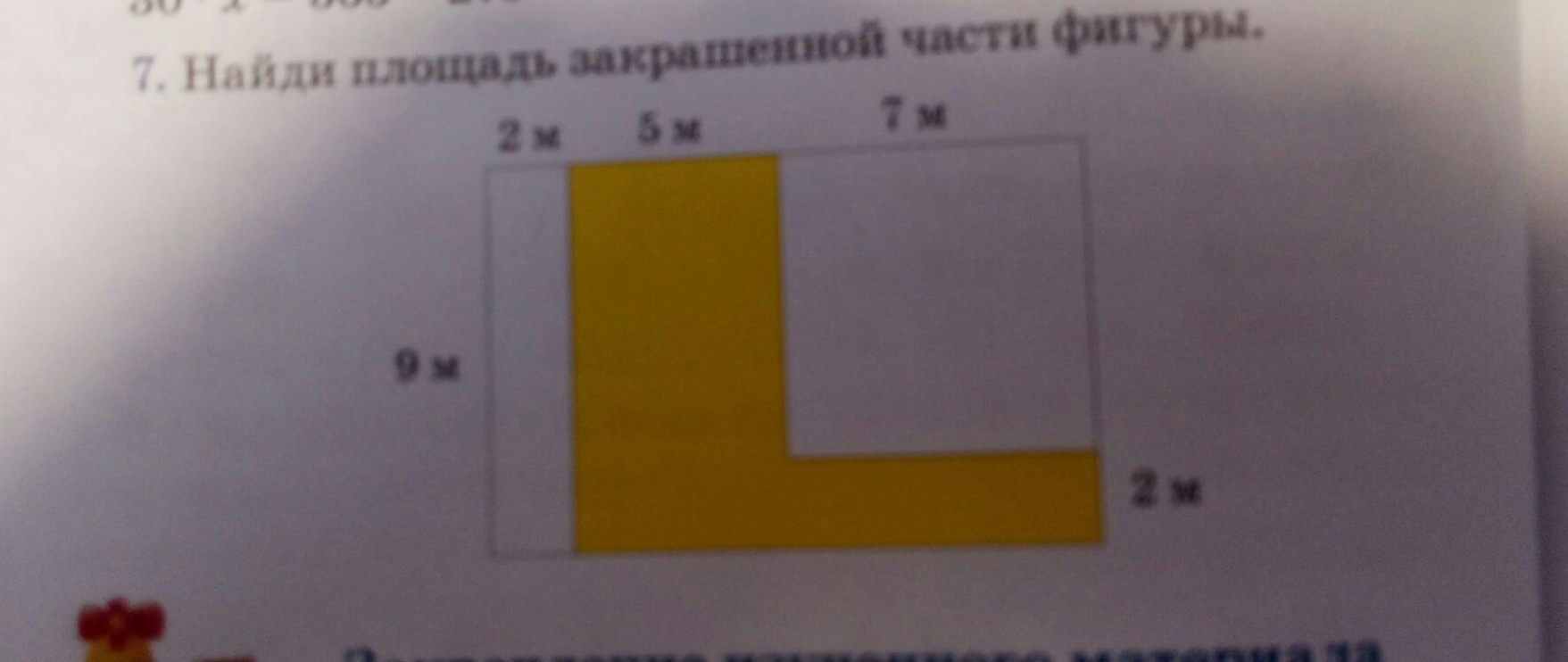 1) (2 + 5 + 7) * 9 = 14 * 9 = 126 м2 - площадь всей фигуры