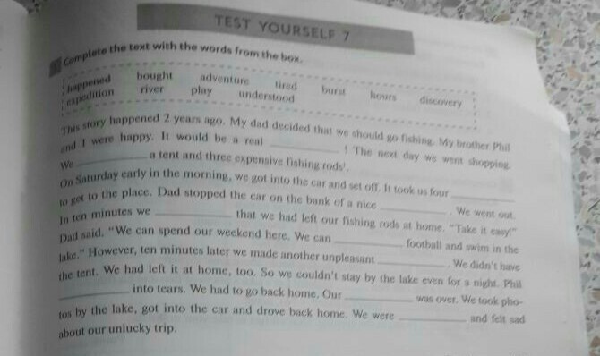 adventure, bought, hours, river, understood, play, discovery, burst, expedition, tired