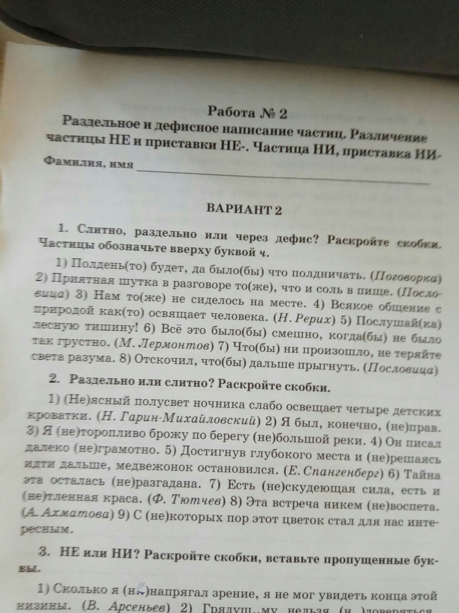 задание 1. 1.Полдень то, было бы. 2. то же. 3. тоже. 4. как-то. 5. Послушай-ка. 6. было бы, когда бы. 7. Что бы. 8. Чтобы.