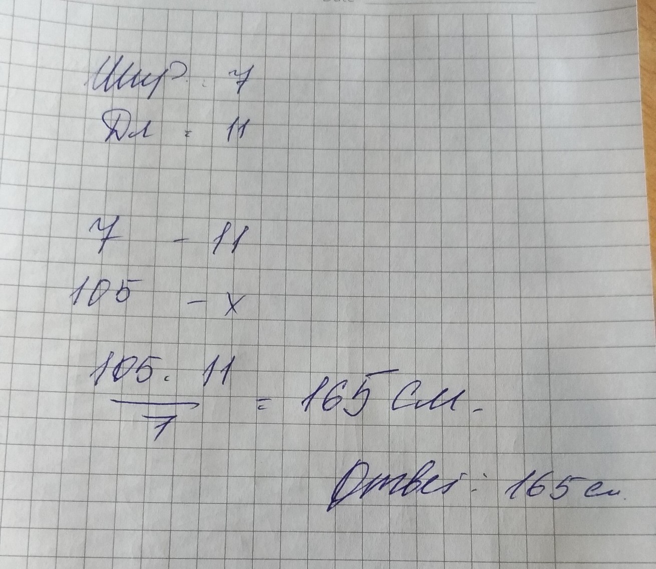 х=105*11/7=165 см