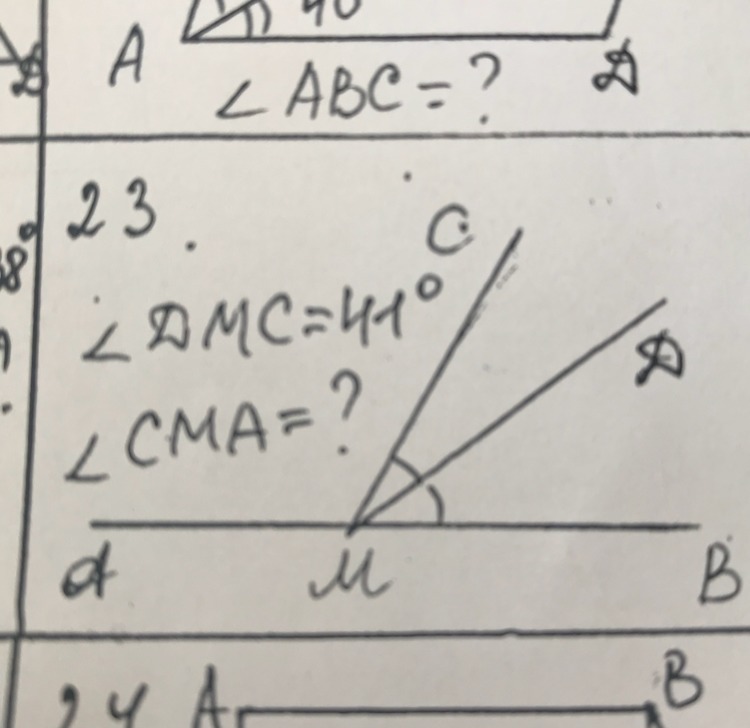 Судя по обозначению угол ДМС тождественный ВМД, следовательно тоже равен 41 градусу, развернутый угол АМБ равен 180, отсюда: