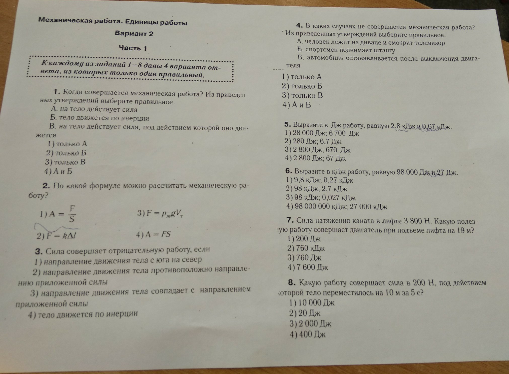 7.Странно как-то, наверное, я просто не так считаю, но в принципе А(полезной работы)=mgh, а m=F/g, то есть m должно быть равно 380кг, если брать g=10(как обычно берут для задач), но если 380*19 получается 7220 джоулей, а такого варианта ответа нет.