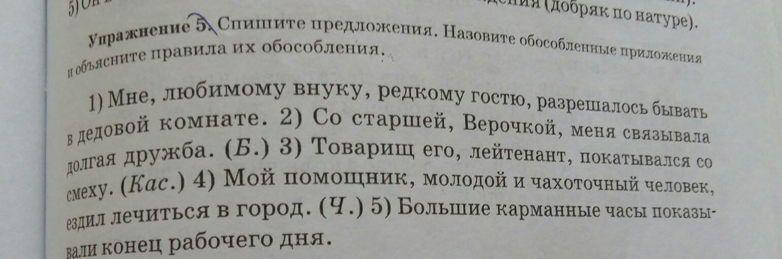 5. 1) Мне (кому?), любимому внуку, редкому гостю, разрешалось бывать в дедовой комнате.