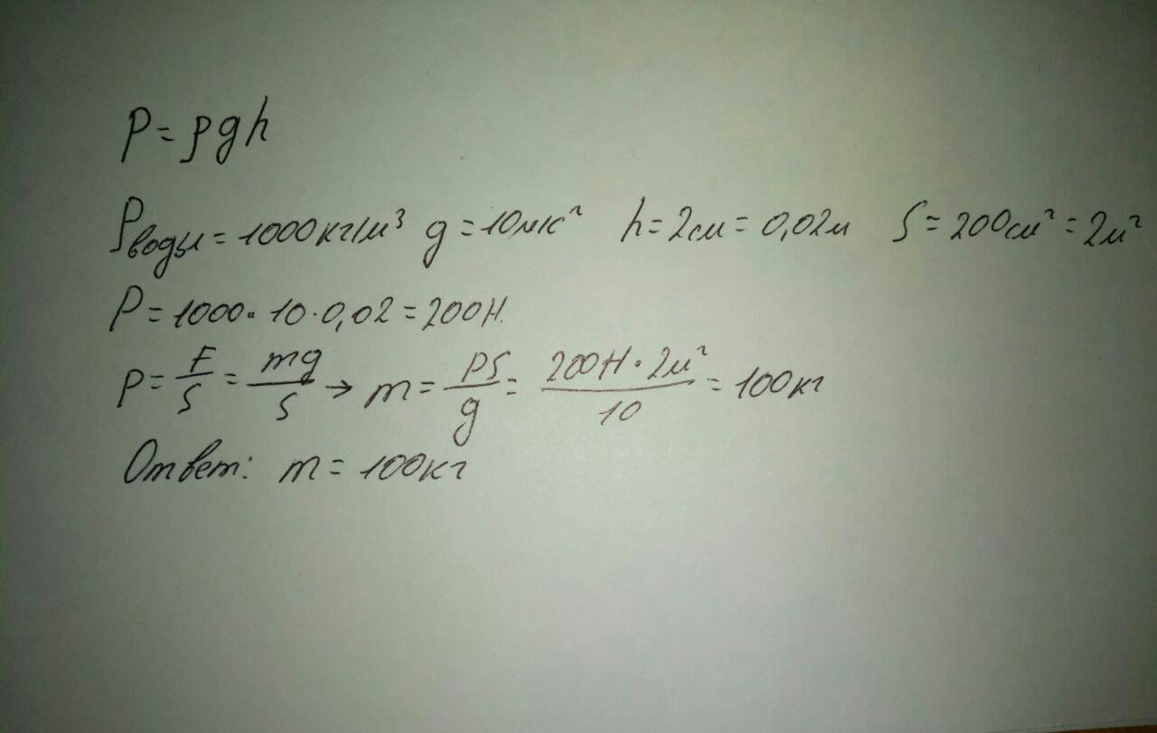 помогите пожалуйстоо. Знайдіть масу крижини, яка плаває у прісній воді, якщо площа основи - 200 кв см, а над водою виступає 2 см крижини
