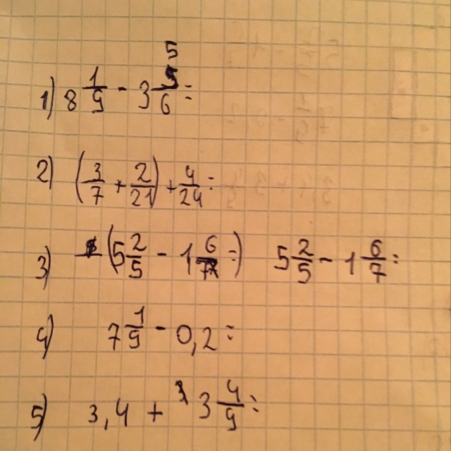 4) 7 1/9 - 0,2 = 64/9 - 2/10 = 64/9 - 1/5 = 320/45 - 9/45 = 311/45 = 6 41/45
