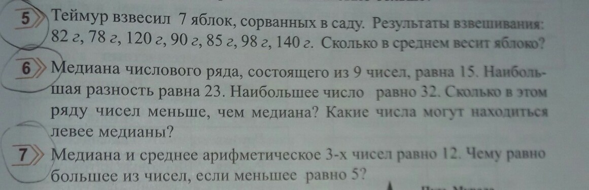 №7Медианой ряда, состоящего из нечетного количества чисел, называется число данного ряда, которое окажется посередине, если этот ряд упорядочить.