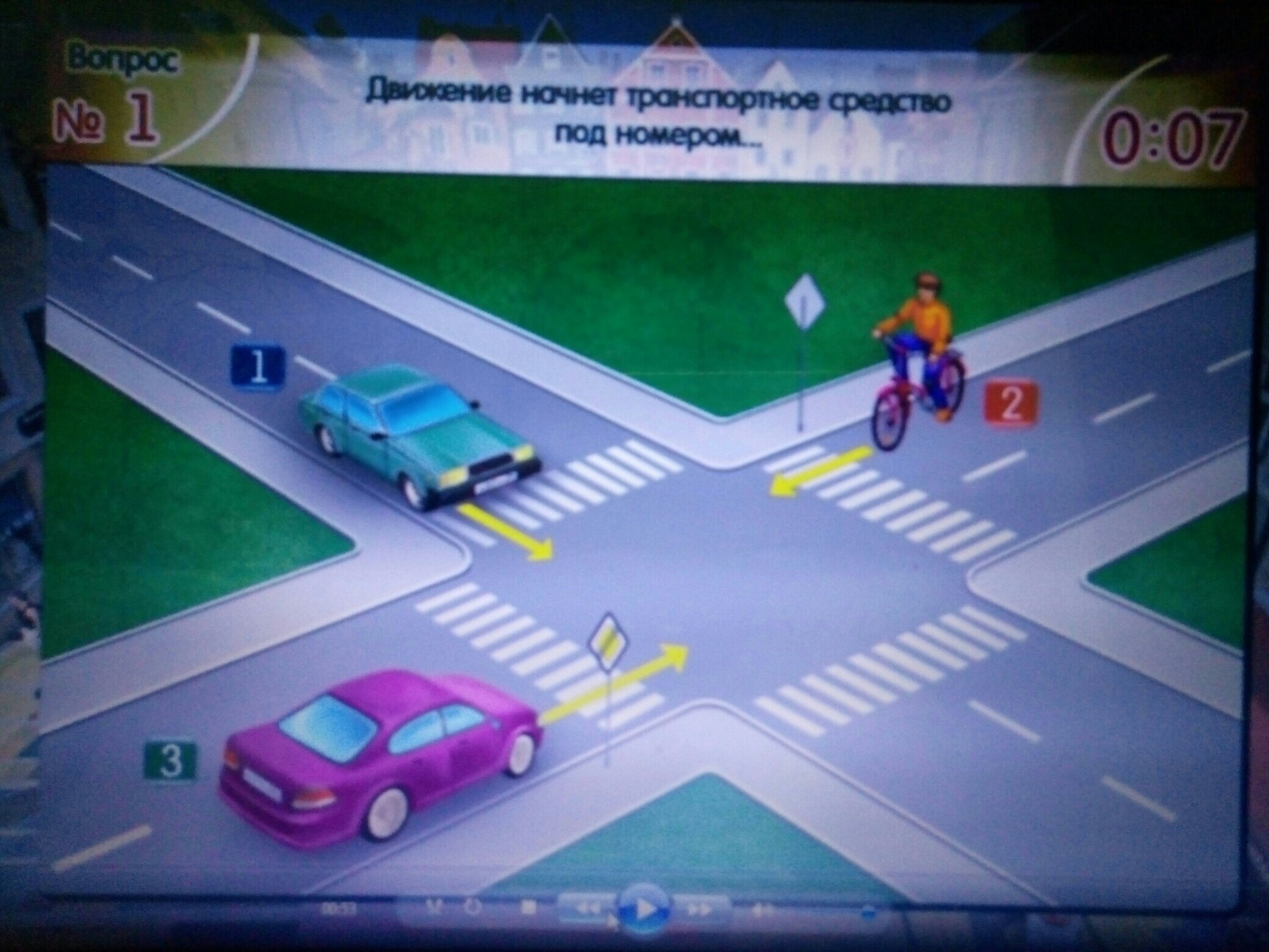 Не особо шарю , но мне кажется под номером 1 поскольку эти стоят перед какими-то знаками , а машина под н1 может спокойно ехать