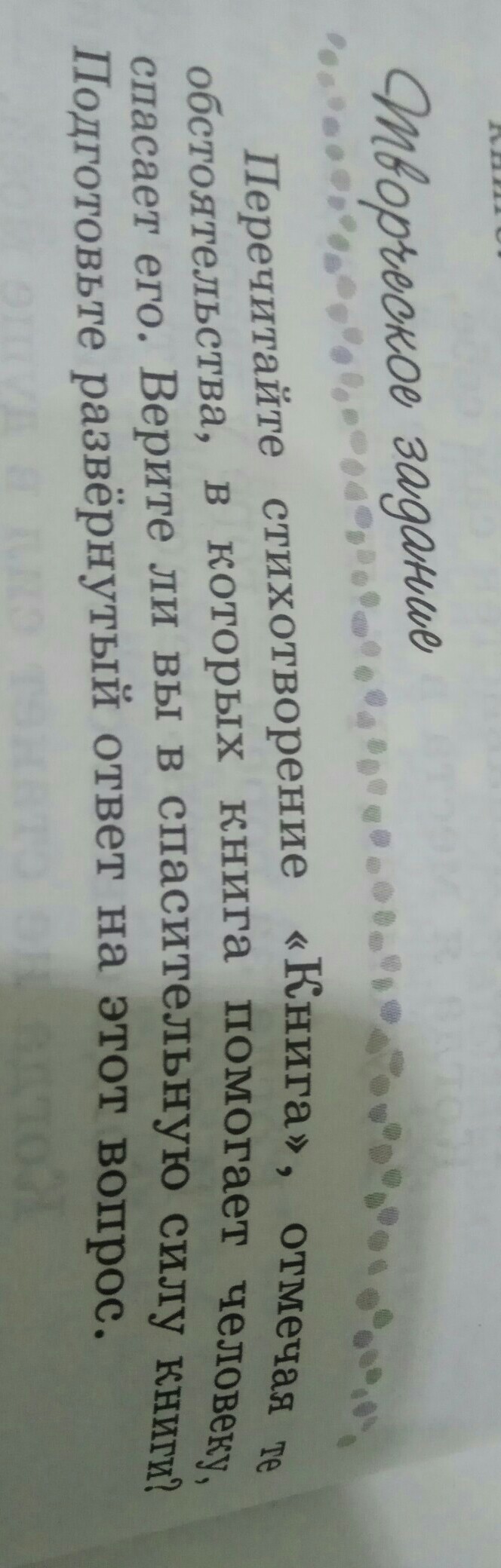 В стихотворени "Книга" автор пишет, что книга спасает его когда Горе у дверей, Когда он места себе не находит, когда накатывает печаль и человек становится ненавистным сам себе.