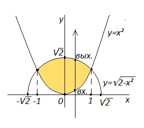 Точки пересечения полуокружности у=√2-х² и параболы у=х² :
