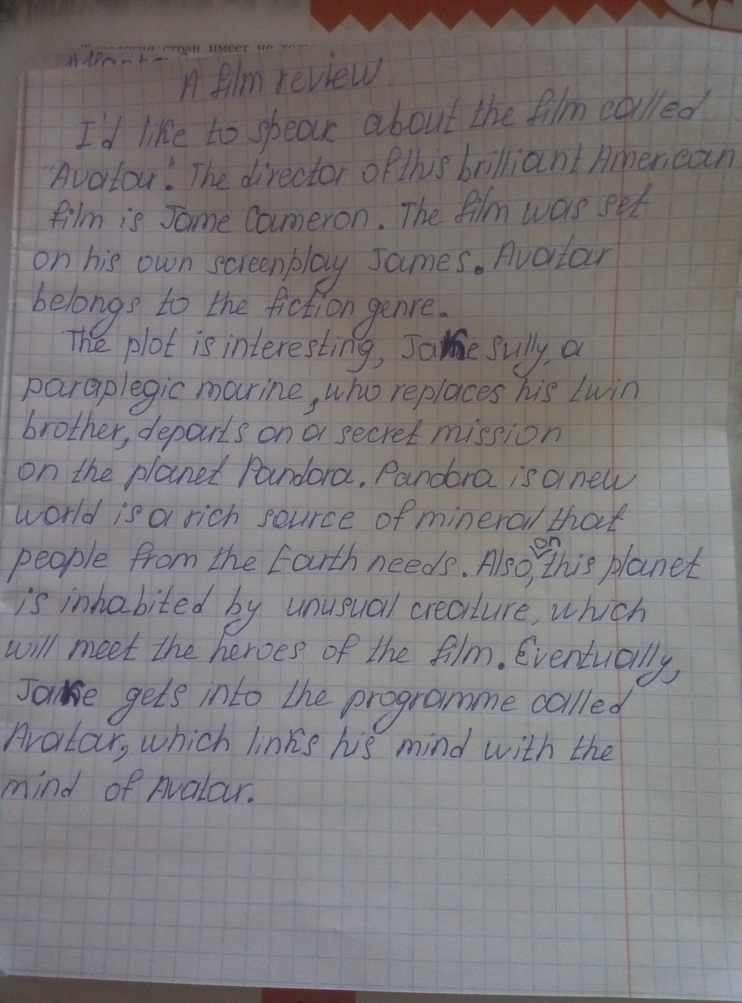 прошу,помогите,пожалуйста! Нужно проверить,правильно ли я все написала.Если что,то описание сюжета должно идти в настоящем времени!Заранее спасибо)))Для удобства прикреплю перевод