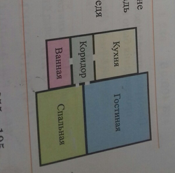 пожалуйста помогите!!! На рисунке дан план квартиры.1см на плане соответствует 200 см в реальности. Площадь спальной комнаты на сколько меньше площади гостиной?рРешите задачу,произведя соответсвенно изменения.