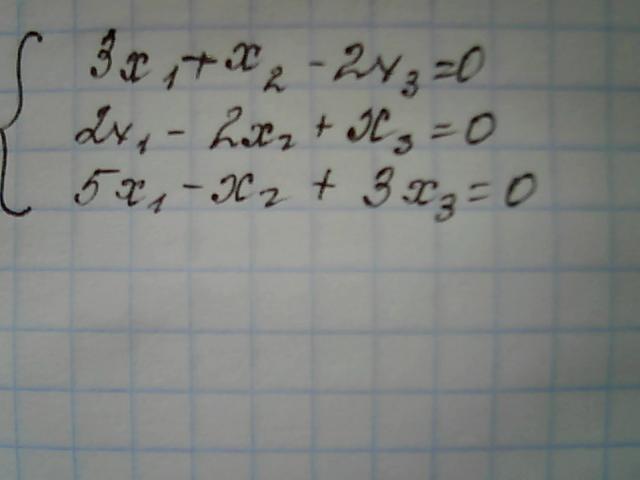 ![left[begin{array}{ccc}3&-1&-2\2&-2&1\5&-1&3end{array}right]* left[begin{array}{ccc}x_1\x_2\x_3end{array}right]= left[begin{array}{ccc}0\0\0end{array}right] left[begin{array}{ccc}3&-1&-2\2&-2&1\5&-1&3end{array}right]* left[begin{array}{ccc}x_1\x_2\x_3end{array}right]= left[begin{array}{ccc}0\0\0end{array}right]](https://tex.z-dn.net/?f=++left%5Bbegin%7Barray%7D%7Bccc%7D3%26amp%3B-1%26amp%3B-2%5C2%26amp%3B-2%26amp%3B1%5C5%26amp%3B-1%26amp%3B3end%7Barray%7Dright%5D%2A++left%5Bbegin%7Barray%7D%7Bccc%7Dx_1%5Cx_2%5Cx_3end%7Barray%7Dright%5D%3D++left%5Bbegin%7Barray%7D%7Bccc%7D0%5C0%5C0end%7Barray%7Dright%5D++)