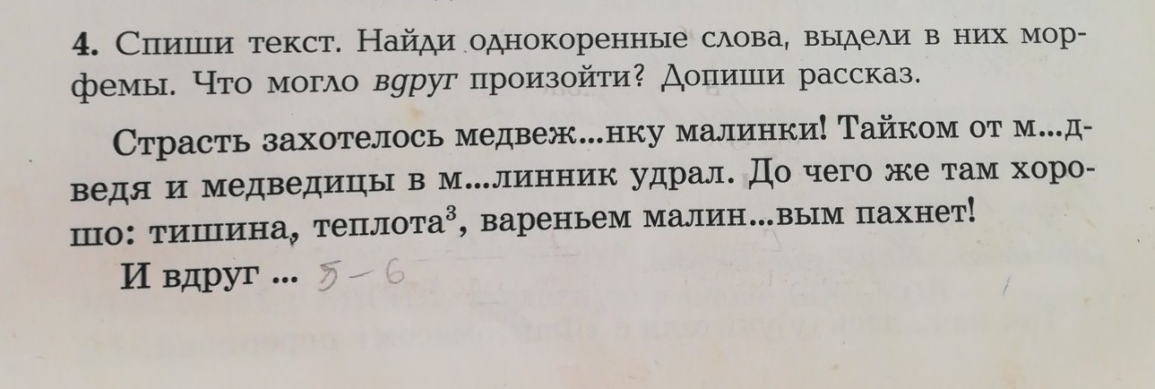 И вдруг что то пошевельнулось в кустах семья медведей испугалась ,убежала и оставила варенье на бревне.В кустах был зайчонок .Зайчонок взял варенье и побежал с растройством что семья медведей испугалась его .Зайчонок добежал до дома медведей отдал им вкусное и замечательное варенье.С тех пор зайчонок и семья медведей дружат и не тужат!