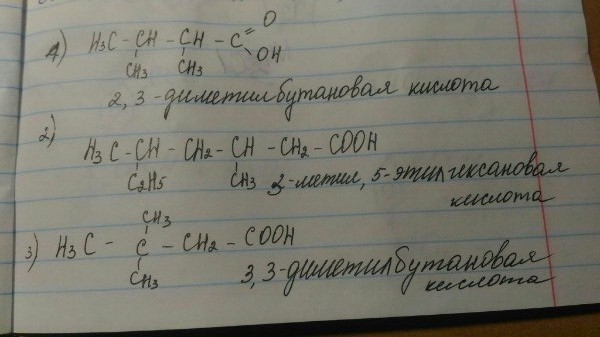 СH3-C(CH3,CH3)-СH2-COOH 2,2-диметилбутановая кислота