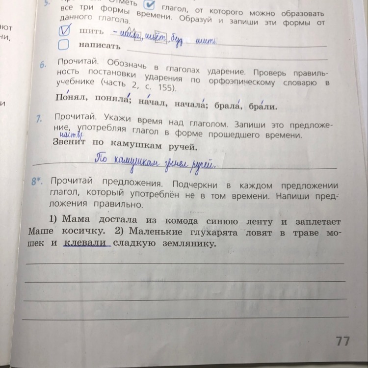 глаголы-достала,заплетает,ловят,клевали мама доставала,заплетала,глухарята ловили