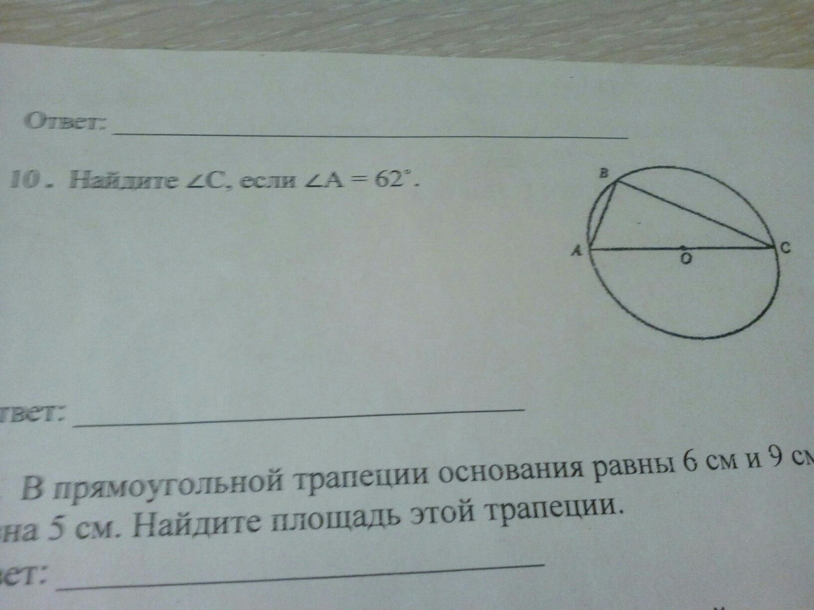 Ответ: 28 угол С (или 90-62=28 т. к АВС прямоугольный)